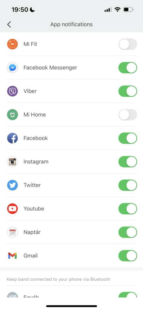 Itt állíthatjuk még be, hogy milyen értesítéseket szeretnénk megkapni, illetve bizonyos applikációkat külön is vezérelhetünk. A kevésbé populáris alkalmazások értesítéseit is megjeleníti az eszköz, ám azokat már nem tudjuk appra lebontva ki/bekapcsolni.