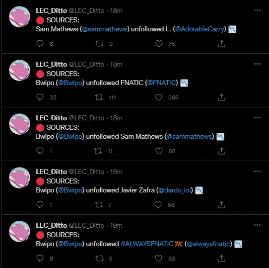 A már említett Bwipo ugyanis a vereség után fogta a telefonját, és lényegében kikövetett mindenkit Twitteren, aki a csapatra emlékezteti. Ment az unfollow a csapatra, a tulajdonosra, az igazgatóra, mindenkire! Később maga Bwipo is megszólalt az ügy kapcsán, állítólag csak egy kis Social Mida szünetre volt szüksége.
