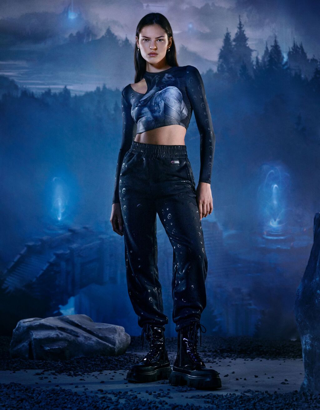 A ruhák között megtalálható egy Ahri hosszú ujjú tüllruha, Akali print kapucnis pulóver, Katarina leggings, Ezreal pulóver és alsó szett, illetve egy Aphelios hálós póló és még sok más.
