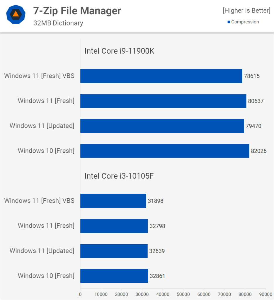 Az alapfelállás itt is maradt a régi, itt is a Windows 11 három féle változata és a Windows 10 esett egymásnak. Vajon itt is jelentős eltérést tapasztalunk VBS használata esetén? Nézzük is!