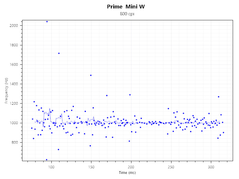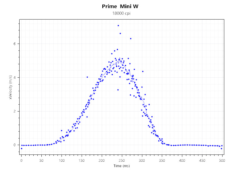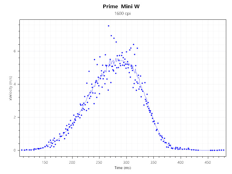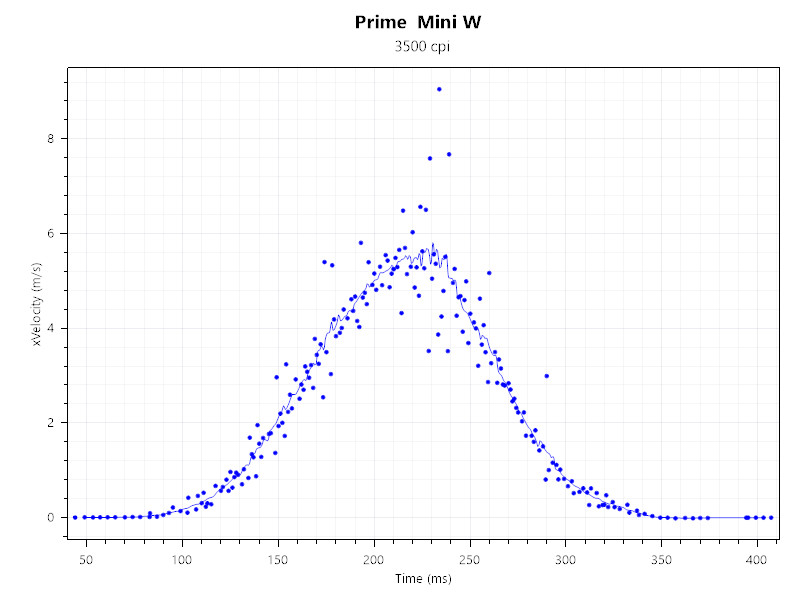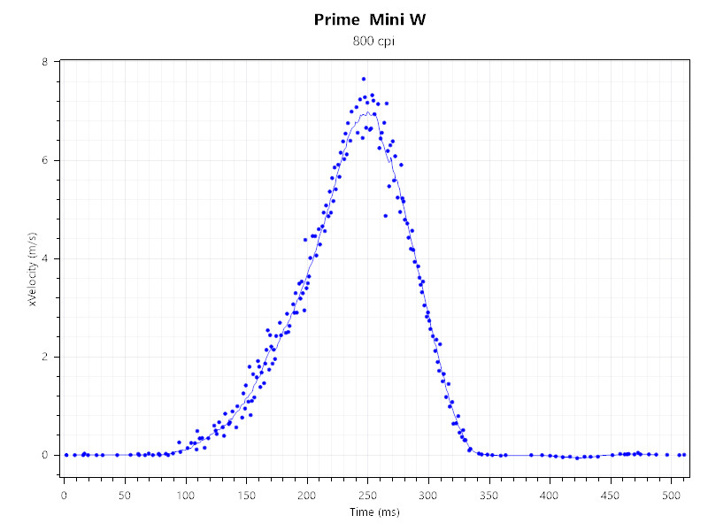Első körben 800 DPI mellett vizsgáltuk a Prime Mini Wireless teljesítményét. A tesztpadon az Endgame Cordura XXL-es padja teljesített szolgálatot, ahol is azt néztük, hogy mekkora rántást képes elviselni és pontosan lekövetni a szenzor. A 800 DPI mellett végzett teszt eredménye kimagasló, mintegy 7 m/s-os gyorsulást sikerült pontosan, hiba nélkül lekövetni a TrueMove Air szenzorának.