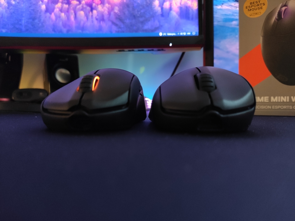 Őszintén szólva kezdek kicsit elbizonytalanodni. Szóval alapvetően a Prime egerek ugyanarra a formára épülnek, a méretük és a kialakításuk viszont változatos. A Prime Mini Wireless a nevével ellentétben nem olyan aprócska, mint amire sokan számítanának, sőt megkockáztatom, hogy ennek kellett volna a Prime nevet viselnie, tekintve hogy a Prime elég terebélyesre sikeredett.