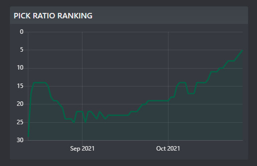 A fegyver szeptemberben már karcolgatta a TOP 5 határait, ám sosem sikerült áttörnie a láthatatlan falat. Egészen idáig. Az október 13-án leolvasható adatok alapján megérkezett a legjobb 5 fegyver közé az SMG, majd az elmúlt két hétben sikerült még egy helyet feljebb kúsznia.
