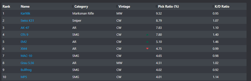 A Call of Duty legutóbbi, nagyobb frissítése alaposan felzavarta az elmúlt hónapok állóvízét. A Krig 6, mely sokáig vezette a WZRanked toplistáját kezd eltűnni a süllyesztőben, ám valamelyik fegyvernek pótolnia kell ezt az űrt. A játékosok az AK-47 (CW) mellett tették le a voksukat, jelenleg ez a leginkább favorizált AR kategóriájú fegyver a Warzone közösség berkein belül.