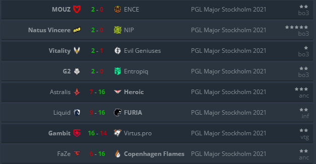 Kedden indult útjára a PGL Major Stockholm 2021, ahol a vasárnapi játéknap két csapat kiesését és két együttes rájátszásba való bejutását eredményezte. A magyar nyelven a Leet Esport csatornáján követhető eseményen a végső győzelemre legesélyesebb NAVI, illetve a remek formában játszó G2 Esports is 3-0-val biztosította be a playoff-ot, míg az ENCE és az Evil Geniuses 0-3-mal kiesett.