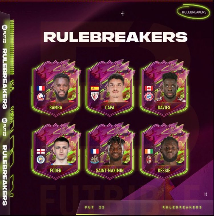 Már az első hét csapata is a megjelenés előtt kiderült, így várható, hogy a Rulebreakers Team 2 se marad a kiadásig titokban. Jelenleg több lap is a levegőben lóg, akit szinte biztosra vehetünk az nem más, mint Bamba, akit már több fórumon is lehoztak a leakerek. Rajta kívül aki nagyon sokszor kerül előtérbe az nem más, mint Alphonso Davies. A Rulebreakers alatt a lapok statisztikái és arculatuk megváltozik, így elképzelhető, hogy egy lassabb Davies csatlakozik körünkbe, ami nem tudom mennyire lenne jó a közösségnek.