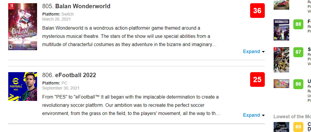 A Konami nagyon szerette volna, ha a PES, vagyis új nevén eFootball nagy siker lenne. Sajnos nem jött össze: az értékelések alapján a lista alján van.