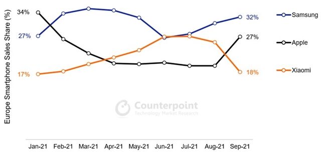 A Counterpoint Research elemzőcég legfrissebb jelentése arra világít rá, a Samsung kevesebb, míg a Xiaomi 51 százalékkal több mobilt adott el az elmúlt negyedévben, mint az egy évvel korábban ugyanekkor. A negyedév végére azonban a Samsung összeszedte magát.