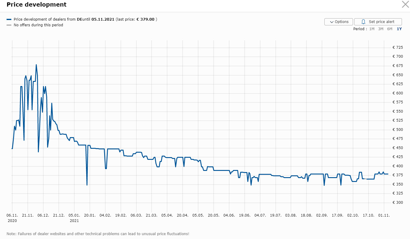 Európában a Ryzen 7 5800X továbbra is 377 eurós átlagáron kapható, és nincs masszív változás :