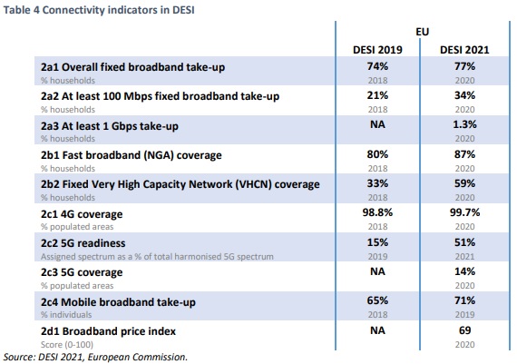 Az Európai Unió évről évre közzéteszi saját felmérésein alapuló Digitális Társadalom és Gazdaság Index (DESI) elnevezésű lakossági összegzését a tagállamok digitalizációjának helyzetéről. A felmérésből kiderül, hogy a tagállamok háztartásaiban milyen erősségű az internet előfizetés, vagy éppen, hogy mennyire elterjedt már az 5G.