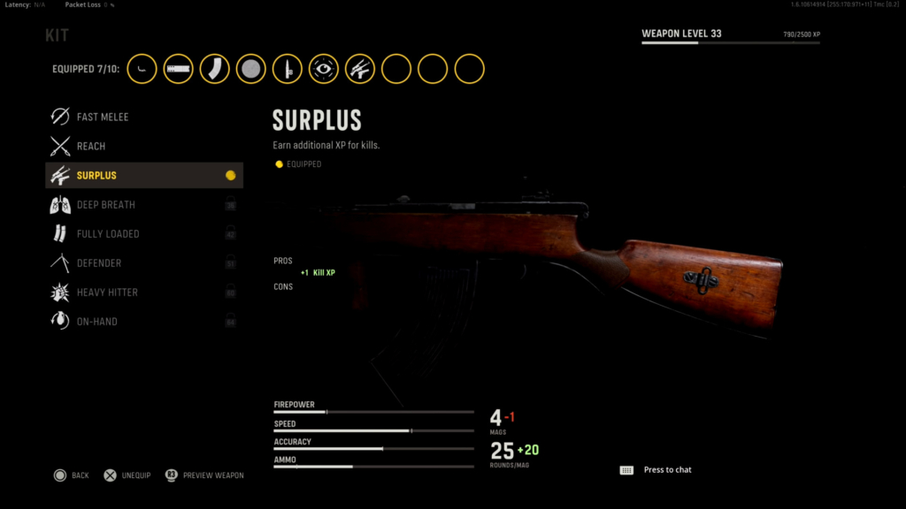 A Surplus Kit egy feloldható attachment, mely szerencsére minden fegyverhez elérhető Vanguardban, természetesen az egyik slot feláldozásával. Az in-game leírásában már olvashattuk, hogy „Earn additional XP for kills” (Szerezz plusz XP-t ölésekkel), ám pontosan nem lehetett tudni, hogy számokban mit takar ez.