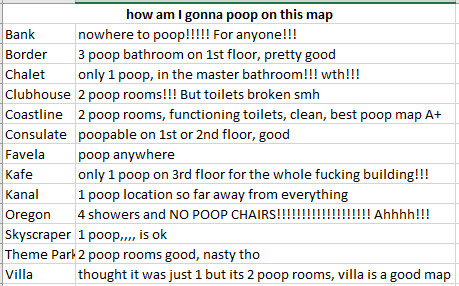 a különböző Siege mapokon hány helyen lehetne kakilni.
