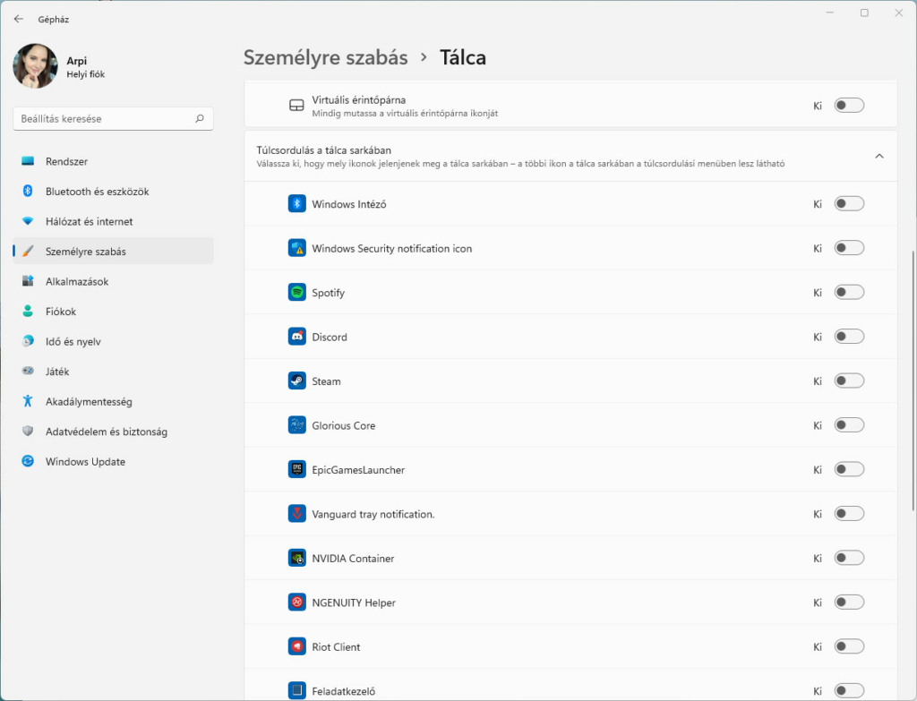 A Microsoft a Személyre szapás menüben implementált egy hasznos funkciót, mely az Overflow (Túlcsordulás) nevet viseli. Itt megadhatjuk, hogy mely alkalmazások ikonjai ne tűnjenek el a tálcán, a jobb alsó részből. Ez papíron nagyon jól hangzik, ám a valóság azt mutatja, hogy sokszor ezek az ikonok nem csinálnak semmit, hiába kattintunk rájuk.