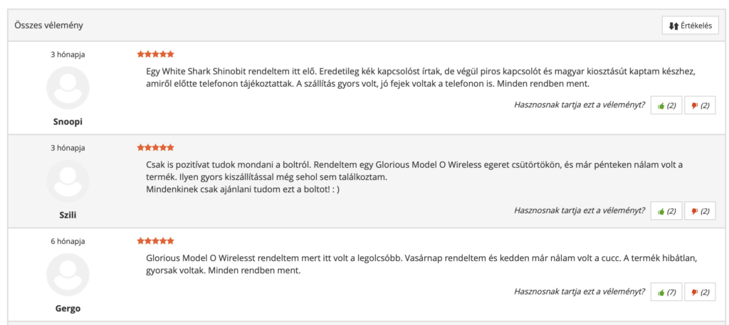 Kétségtelen, hogy még mindig létezik egy-két kétséges hátterű bolt, de a gyűjtőoldalaknak (Árukereső vagy épp Google) köszönhetően a boltokról is találhatunk értékeléseket, visszajelzéseket magyar nyelven is. Ezek alapján pedig sokkal könnyebben eldönthetjük, hogy mely boltok mellett tegyük le a voksunkat, külföldi áruházak esetében ez nem mindig egyértelmű, ráadásul néha az értékeléseket sem értjük teljes mértékben.