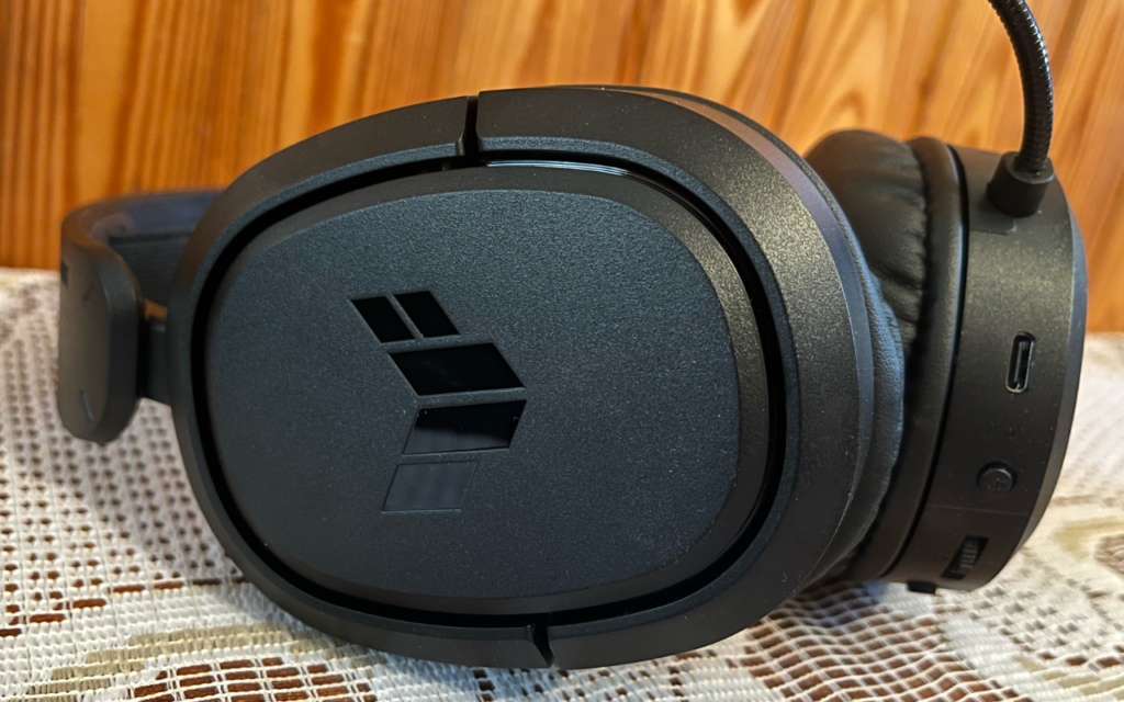 A fejhallgatón találhatjuk a kezelőszerveket és az USB-C csatlakozást is. Bekapcsoló gomb, hangerőszabályzás és mikrofon mute gomb, kell ennél több? Ezen kívül egy LED fényt is kapunk, mely visszajelzésre szolgál a fejhallgató éppen aktuális állapotáról.