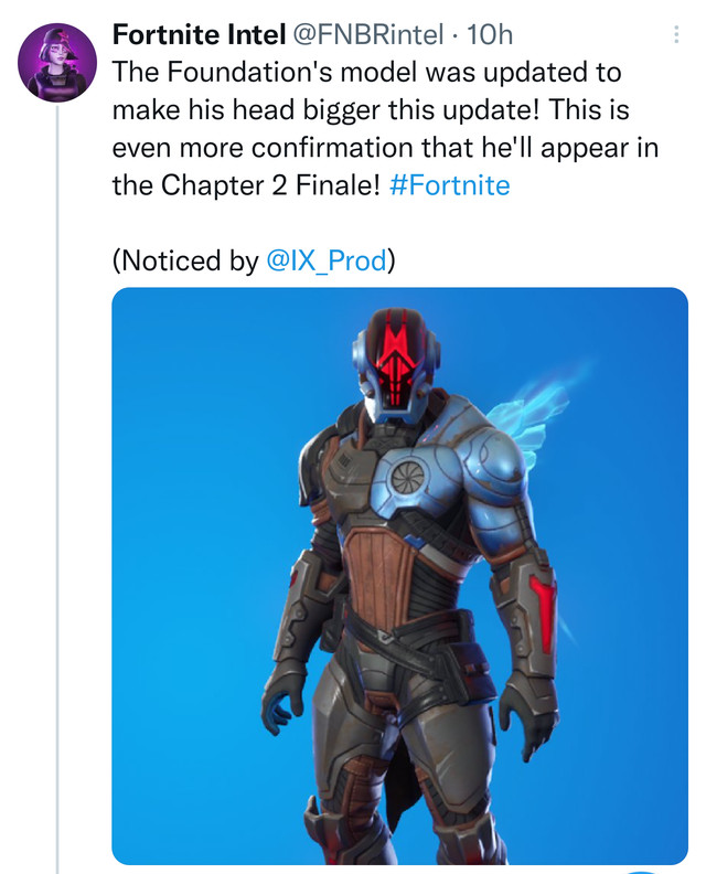 Az elmúlt szezonok történetének egyik főszereplője a Seven közé tartozó The Foundation volt. Legelőször pár szezonnal ezelőtt, a Season 6 startkor találkozhattunk vele, majd látszólag feláldozta magát a The Zero Point stabilitásának érdekében. Később az Epic Games utalt rá, hogy nem kell temetnünk a karaktert, mely időközben szerepet kapott képregényekben vagy épp Hasbro figuraként.