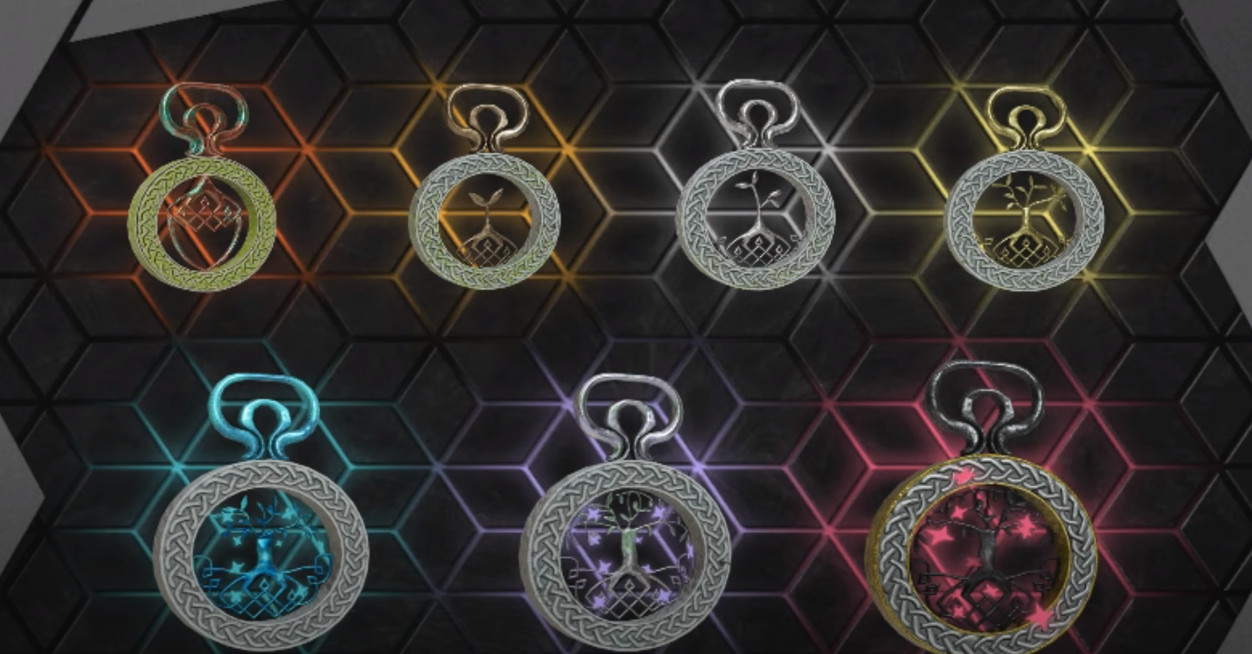 Ahogy látható, a charmok egy folyamatot mutatnak be: a legalsó szinten még csak magok (makkok) vagyunk, aztán szép lassan, ahogy nő a szint, úgy lesz egyre kifejlettebb a fa. Az egész kinézet egyébként kissé az északi mitológiára hajaz, olyan, mintha a világfát látnánk. A lényeg, hogy minél magasabb szinte jutunk a rankeden, annál kifejlettebb fa lesz látható a charmon, nem beszélve annak színéről.