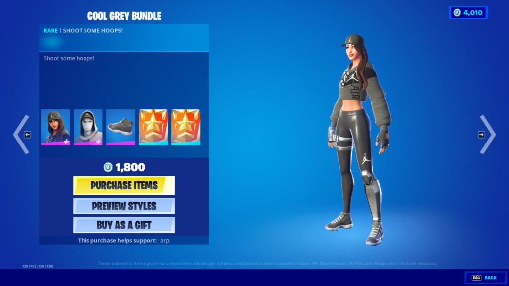 Az egyes kozmetikai tárgyakat ezúttal ismét egy Bundle formájában érhetjük el, csakúgy, mint annak idején az eredeti Hang Time névre hallgató csomagot. Az Emote-ot külön is megvásárolhatjuk 400 V-bucks-ért.