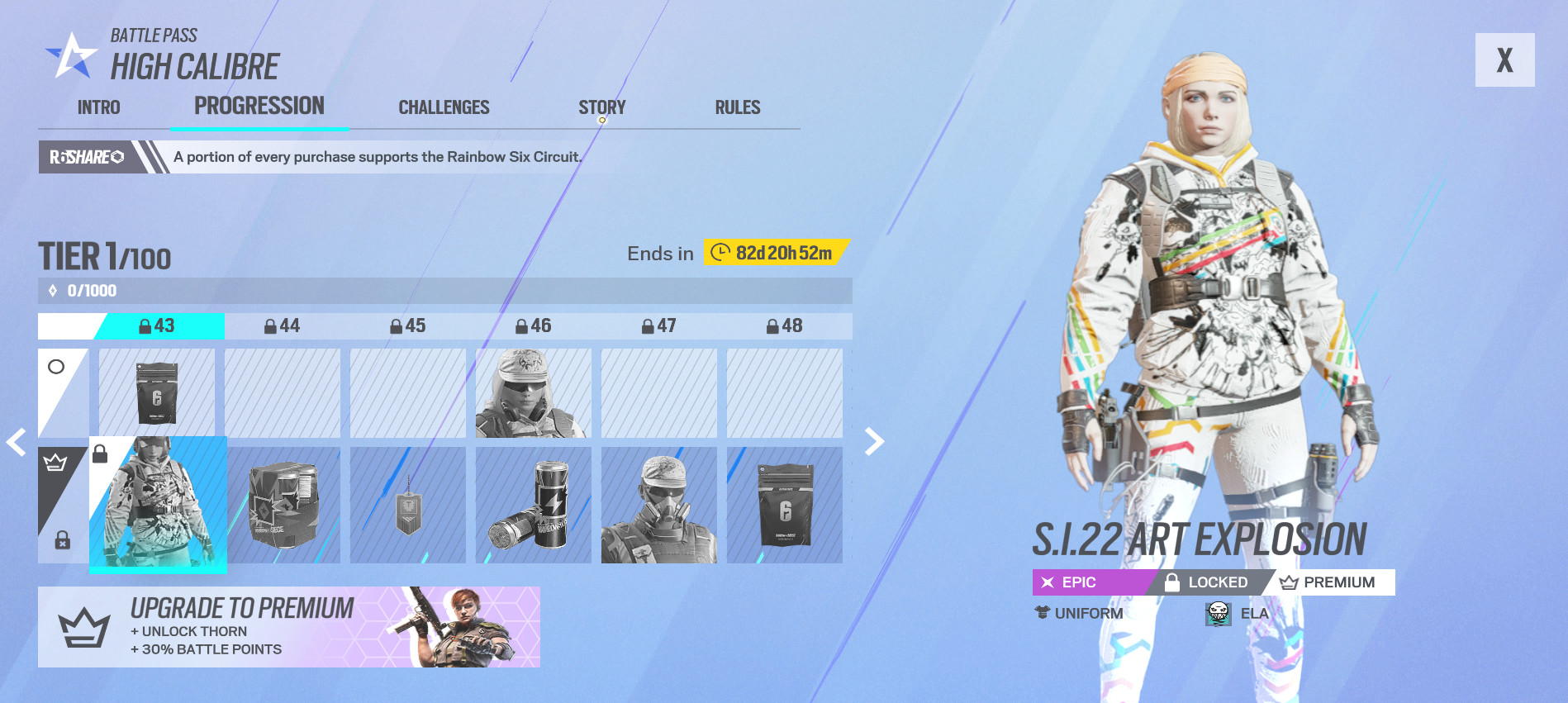 Itt már minden szinten jutalmat kapunk, ráadásul az új operátort, Thorn rögtön az első szinten megkapjuk. Ezen kívül a Premium Battle Pass tulajdonosok 30%-kal több Battle Points-ot is kapnak.