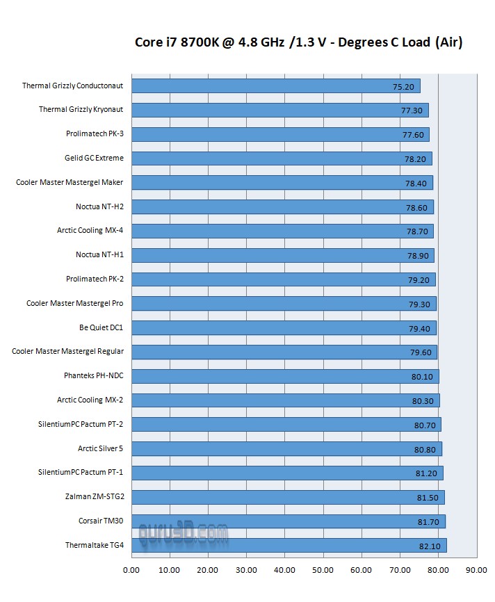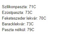 Természetesen az az értékekből egyből látszódott, hogy paszta nélkül mérföldekkel romlik a hőmérséklet, de így sem lesz teljesen használhatatlan a gép. Ami azonban meglepő volt, hogy a feketeszeder lekvár teljesített a legjobban az 5 perces stresszteszt során. Azonban a dolgot nem tudjuk nyugodt szívvel ajánlani, hiszen míg a paszták évekig képesek erre a teljesítményre, könnyen lehet, hogy a lekvár már órákon-napokon belül megadta volna magát. Víztartalmuk miatt pedig gépünk/alaplapunk komponenseire is veszélyes lehet.