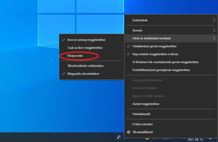 Szerencsére pár kattintással kikapcsolhatjuk. Egyszerűen jobbklikkeljünk a tálcára, keressük meg a Hírek és érdeklődési területek pontot majd válasszuk ki a Kikapcsolás opciót. A tapasztalatok alapján ezt követően már nem jön elő a fent említett hibajelenség, feltéve, ha valóban ez okozta a problémát.