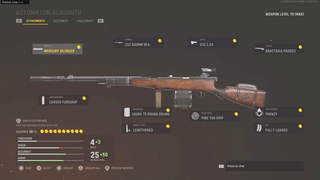 - Magazine: 7.62mm Gorenko 71 Round Mags