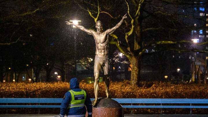 Ibra tipikus félmeztelen, gól utáni vonulásának pillanatát ragadja meg ez az alkotás, ami jelenleg Malmö-ben áll, Svédországban.