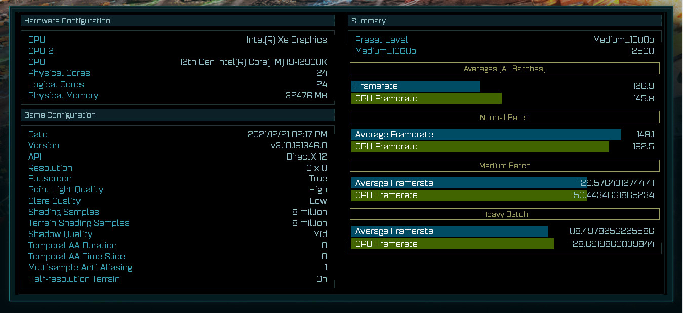Ebben a buildben/setupban egy Core i9-12900K és 32 GB RAM volt, ami minden bizonnyal húzhatott valamennyit a súlyból, ráadásul ez a benchmark sem a legjobb, ha a gyorsabb GPU-kkal való skálázásról van szó.