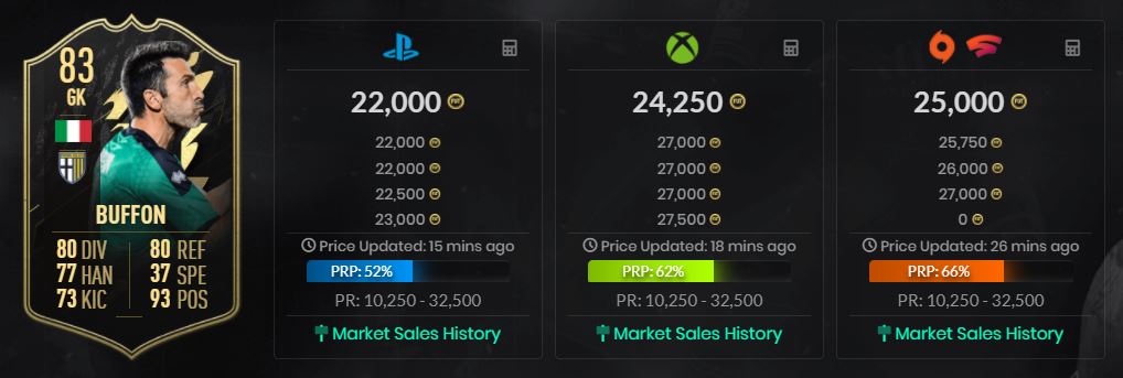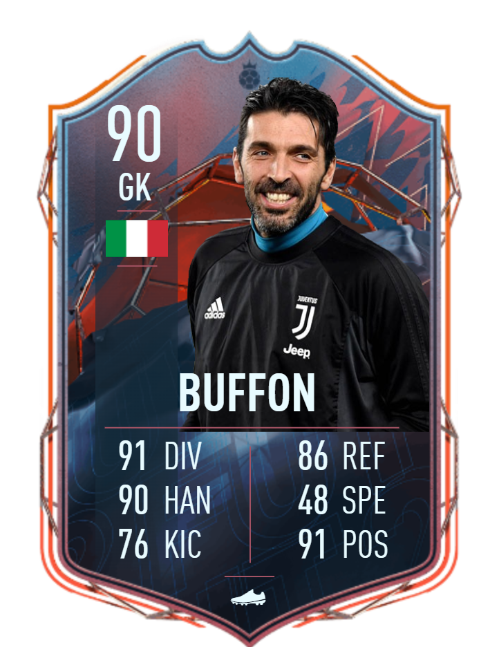Az Azzurri-k korábbi portása az Ultimate Team módban először 2010-ben volt látható, egy 90-es lappal robbant be a játékba. Az évek során többször is bekerült az adott hét legjobbjai közé, egészen pontosan 8 alkalommal kapott speciális lapot teljesítményéért. Nem kizárt, hogy amennyiben végleg befejezi aktív pályafutását, nagy valószínűséggel hamar vissza fog térni Icon, vagy Hero lapként. Mi eljátszottunk a gondolattal, hogy hogyan is nézne ki Buffon lapja, amennyiben az utóbbi verzió érvényesül, vagyis Hero kártyaként láthatnánk viszont a játékban. Ami a számokat illeti, a FIFA 18-as FUTMAS kártyája értékeit vettük alapul. Íme: