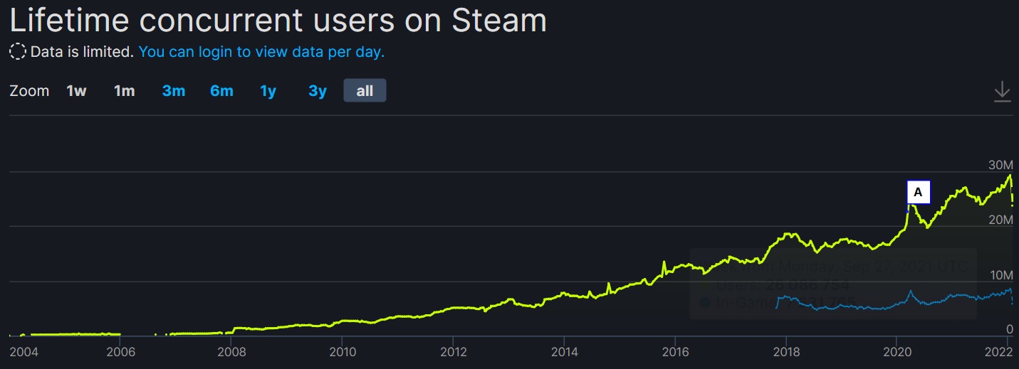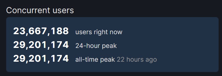 Még sosem fordult elő a Steam történetében, hogy az egyidejű felhasználók száma átlépte volna a 29 milliót. Egészen mostanáig, ami természetesen új rekord.