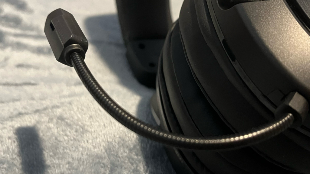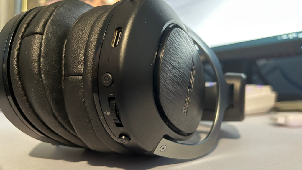 A fejhallgatón találhatunk több kezelőszervet és természetesen itt csatlakoztathatjuk az USB-C kábelt is a töltéshez. Szerencsére szinte mindent vezérelhetünk a fejes jobb oldalán: bekapcsoló gomb, hangerőszabályzás, illetve egy kattintással némíthatjuk a mikrofonunkat is, ha váratlan helyzet adódna.