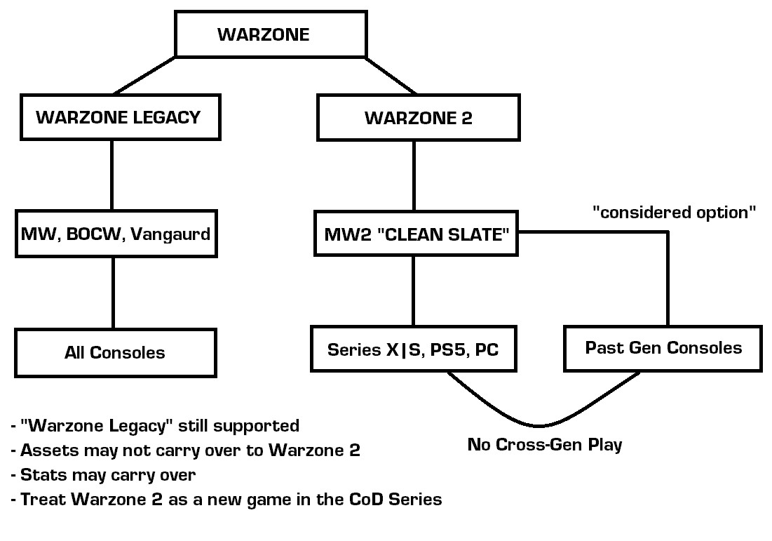 Az utóbbi napokban egyre több információ jelent a „Warzone 2” kódnéven futó Warzone folytatással kapcsolatban. 2023-as megjelenés, 2022-es megjelenés, régi konzolos támogatás, csak next-gen támogatás…az első napok hírei folyamatosan ütötték egymást, így meglehetősen nehéz volt kiigazodni azon, hogy mivel is állunk jelenleg szemben. Szerencsére hétvégére nagyjából kitisztult a helyzet, melyet Tom Henderson össze is foglalt egy meglehetősen egyszerű, de közérthető ábrában.
