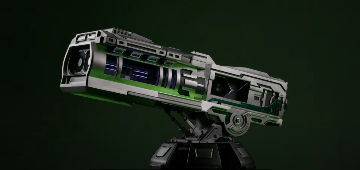 A ház különlegessége a lézeres fényeffektus és hogy valóban mozgatható, akár a fegyver a játékban. A gép lelke egy Nvidia GeForce RTX 3080 kártya, Intel i7 10700K CPU, és ASRock Z490 alaplap, 16 GB ZADAK memóriával. A Doom Eternalban látható BFG ágyúhoz hasonlóan az gép fényekkel, lézerekkel ragyog.