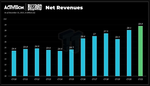 2021-ben ugyanis rekordbevételekkel zárta az évet az Activision, az adók, járulékok, és mindenfajta kifizetés után 8.8 milliárd dolláros bevétel maradt a kasszában.