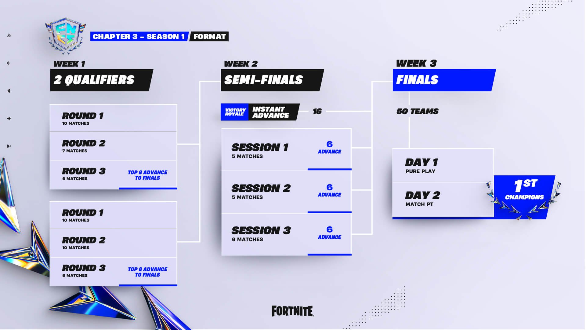 Február 28-án élesedik a kupa, a formátum az FNCS-hez hasonlóan itt is „Duo” lesz. A rendelkezése álló időkeret és meccsszám is limitálva lesz, a verseny 3 órán keresztül fog tartani és a párosoknak 10 meccsük lesz a pontgyűjtésre. A jutalom az FNCS 3:1 Champion Outfit névre hallgató skin és a hozzá tartozó Winner’s Mark Back Bling lesz majd. Az Epic Games fejlesztői azonban elfelejtették a fájlokba helyezni ezeket a tartalmakat, így egyelőre a leakerek sem tudták elővarázsolni őket.
