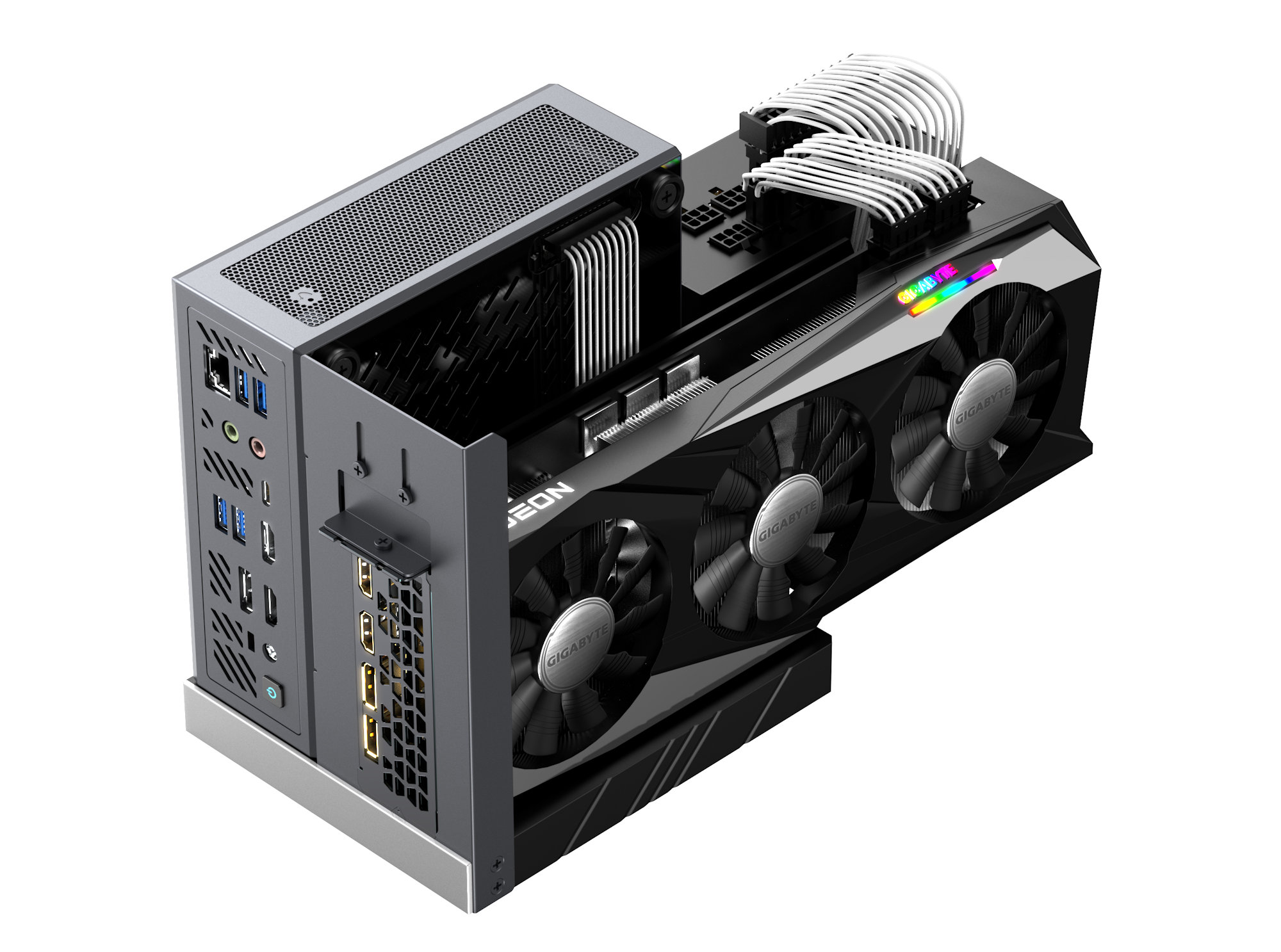 Nos, a Minisforum megalkotta a hibridet és elnevezte B550-nek. A Mini-PC-nek van egy szabadon álló PCI-Express 3.0 foglalata, amely a dokkolóhoz való csatlakoztatás után külső GPU-val is működik. Így a Mini-PC egy kompakt gamer géppé alakítható.