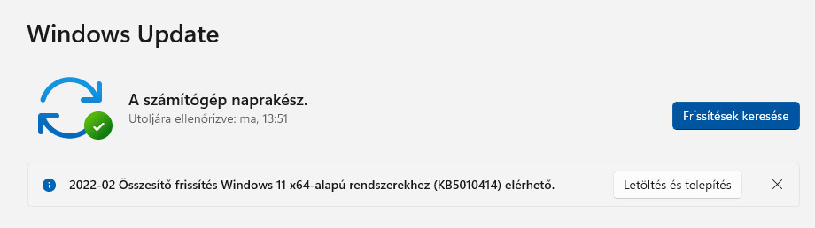 A Microsoft a KB5010414 nevet viselő viselő csomagot folyamatosan juttatja el a felhasználók gépeire, sokaknál már most is felbukkanhat, ám az is előfordulhat, hogy csak pár nap múlva látjuk a Windows Update-ben.