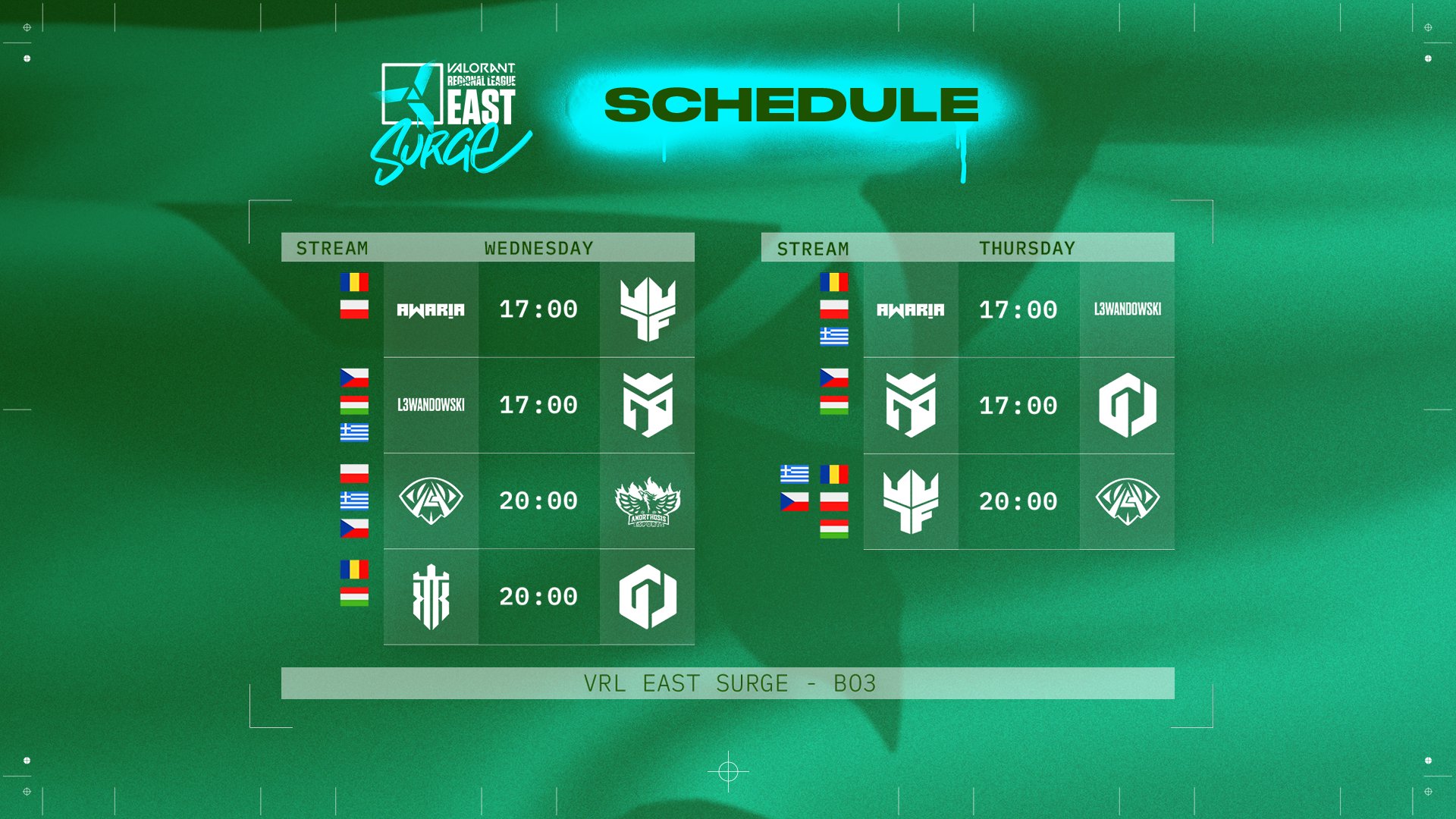 Múlt héten elstartolt a Lengyelország és Kelet-Európa legjobb csapatait fogadó VRL East: Surge versenysorozat csoportköre, ahol hazánkat a Gamerland Outlaws csapata képviseli. A szervezők négy héten keresztül eresztik egymásnak az ötösöket, hogy minden csapat találkozzon egy-egy BO3-as meccs keretein belül. A versenynapok szerdára és csütörtökre esnek, általában 17:00-ás vagy 20:00-ás kezdéssel.