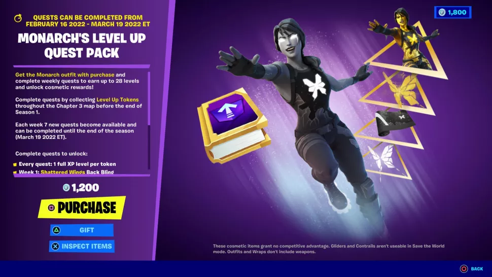 Az Epic Games körülbelül egy héttel ezelőtt különleges skinnel bővítette a Fortnite Item Shopját. Gyakorlatilag outfit csomagba rejtett szintlépéseket kapunk, hiszen minden héten érkezik a szigetre több „Level Up Token” is, melyekkel feloldhatjuk a skin stílusait, miközben értékes szinteket is léphetünk a Battle Pass-ban. Azoknak a felhasználóknak, akiknek valamiért nincs sok idejük játszani, de kimaxolnák a belépőt, kiváló lehetőséget biztosít a Monarch’s Level Up Quest Pack.