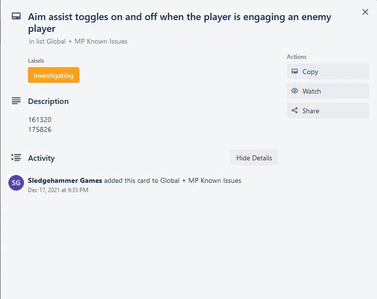 Nem is kellett sokáig keresgélni, a profi játékosok meg is találták az ezzel kapcsolatos bejegyzést a Vanguard hivatalos Trello oldalán. A fejlesztők is elismerték, hogy az Aim Assist egyszerűen kikapcsolódik bizonyos helyzetekben, jelentősen megnehezítve a játékosok dolgát. Érthetetlen, hogy miért nem lett javítva ez a hiba 2 hónap alatt, remélhetőleg az elkövetkezendő pár napban valamit kitalálnak a Sledgehammer Games munkatársai.