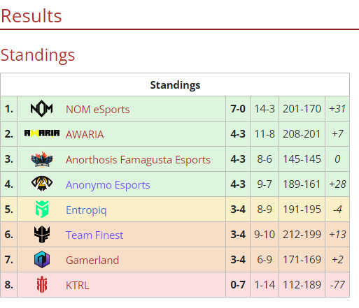 A Gamerland Outlaws (korábban need more DM) gárdája 3-4-es mérleggel várta a meccsek végkimeneteleit, ám ma már mérkőzést ők nem játszottak.