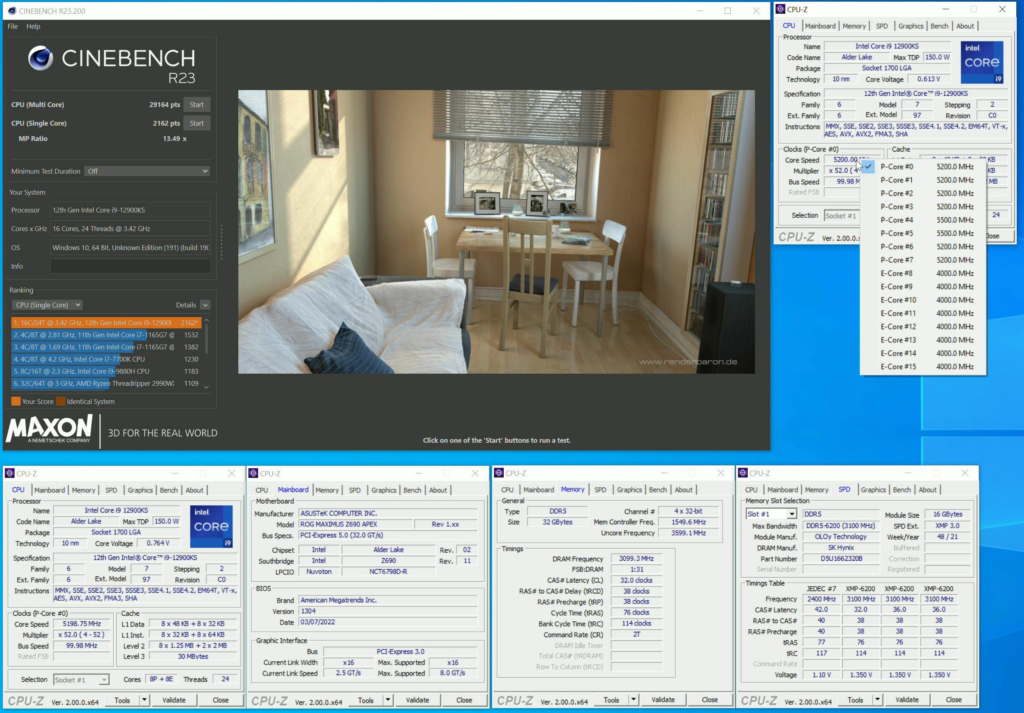 A CPU-Z adatok megerősítik, hogy a processzor PBP-je (PL1) 150 W-ra nőtt, ami 25 W-os növekedést jelent az eredeti 12900K SKU-hoz képest. Továbbá a CPU monitorozó eszköz nem listázza az AVX-512 utasításokat, ami megerősíti, hogy az Intel valóban kiolvasztotta ezt a részt a szilíciumból. A Seby által biztosított teszt szerint a Core i9-12900KS 2162 pontot ér el az egymagos és 29164 pontot a többmagos tesztben: