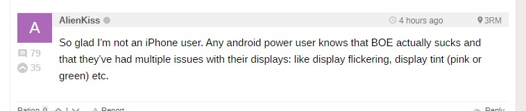 A közösségi médiában többen is kritizálták az Apple lépését, hiszen Androidos fronton nem ismeretlen a BOE. Több problémát is összekötnek a gyártó paneljeivel, melyek közé tartozik a kijelző indokolatlan villogása, vagy épp rózsaszínes, zöldes elszíneződések megjelenése.