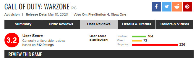 Tökéletesen értjük, hogy a Metacritic értékeléseinek nagy része még a 2020-as időszakból származnak, és elvétve találunk olyat, ami 2022-re vonatkozik. Azonban ennek ellenére érdekes azt látni, hogy a Call of Duty Warzone megítélése mennyire már a játékosok szemében, mint a szakmáéban.