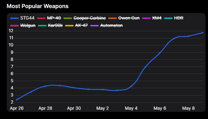 Elérkeztünk a kategória királyához. A Vanguard integráció után is népszerű volt, ám azt senki sem gondolta volna, hogy ennyire a csúcson lehet május közepére. A fejlesztők keze rendesen benne van ebben, hiszen valamelyik fegyvernek fel kell töltenie az űrt, egyértelműen a múlt heti update után lőtt ki ennyire: