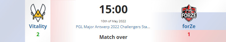 Ezt a mérkőzést látni kell! A tét a továbbjutás volt a párharcban résztvevőknek, és szó nem érheti Őket mivel, keményen tettek is azért, hogy nyerjenek. A forZe már az első pályán (Nuke-on) megmutatta a foga fehérjét, amikor el tudta lopni a „pályaelőnyt” a francia többségű csapattól. A Vitality-t sem kellett félteni, az elbukott saját pálya után felszívták magukat és egy óriási Dust2 győzelmet tudtak aratni a forZe ellen.