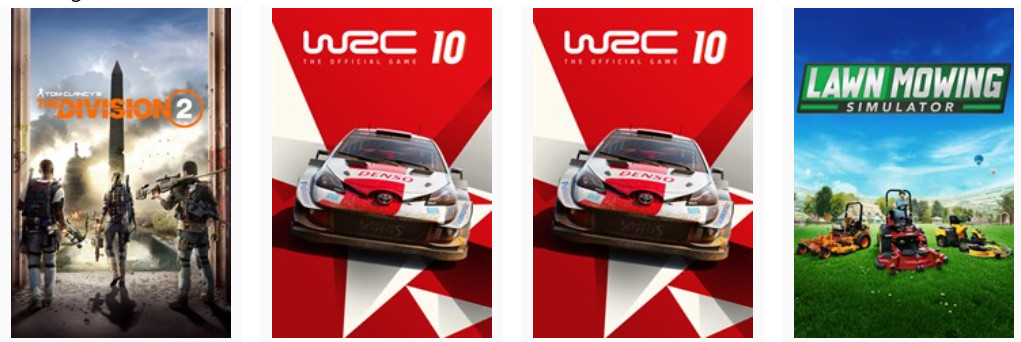 Tom Clancy’s The Division 2, WRC 10 FIA Rally World Championship és Lawn Mowing Simulator.