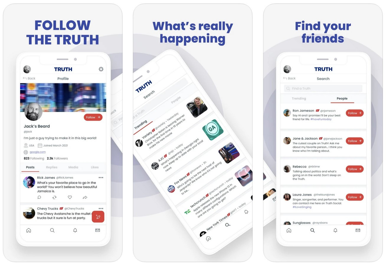 a Truth Social-t reklámozza, ahol elvileg bármit lehet csinálni.