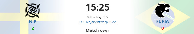 Az NiP magabiztosan mosta le a pályáról a brazilokat. A FURIA a saját választásán mindössze 2 körig jutott, és hiába tudtak szépíteni a második pályán körök tekintetében, a győzelemhez ez is kevés volt. NiP 2-0.
