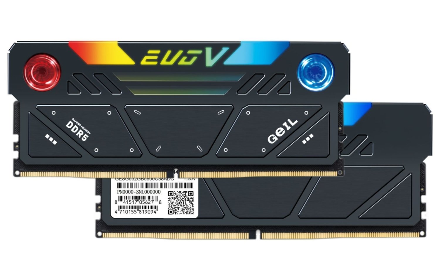 Bejelentették a GeIL EVO-V DDR5 RGB hardcore gaming RAM-ot: a világon elsőként kétventilátoros RGB hűtéssel.
